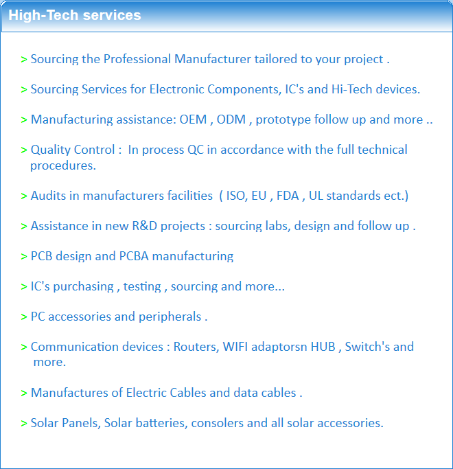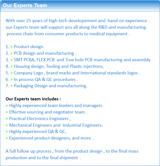 More than 25 years of experience in the high-tech and electronic fields , both in development , manufacturing and final mass production . Experience in OEM & ODM of consumer products, PC accessories , tablets and medical equipment .